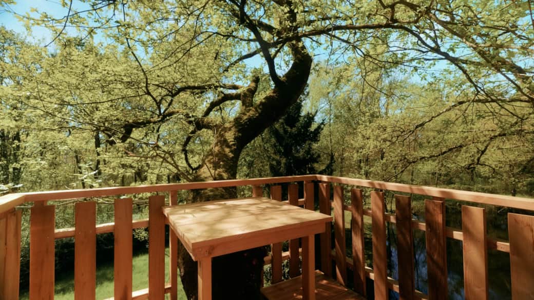 Chacun a sa signature : Sur l’eau — terrasse au-dessus de l’eau, jeux de miroirs et reflets ; Dans les arbres — terrasse perchée, immersion dans le feuillage et le chant des oiseaux ; Sur l’îlot — terrasse sur un îlot, la sensation d’être seuls au monde.